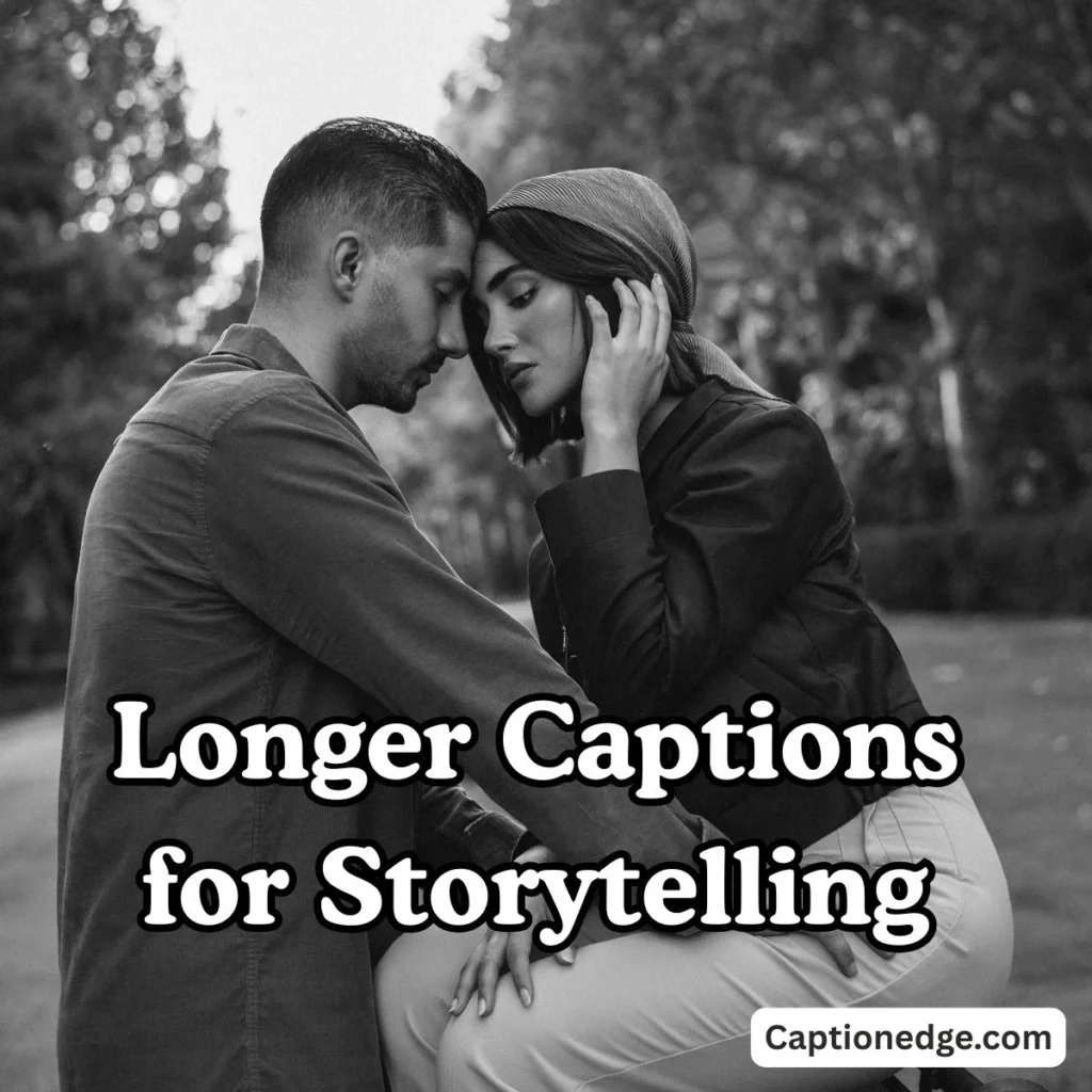 Storytelling captions transform simple photos into narrative moments that engage your audience with the deeper story behind your relationship. These narrative expressions work beautifully for anniversary reflections, milestone celebrations, and posts where you want to share more context.